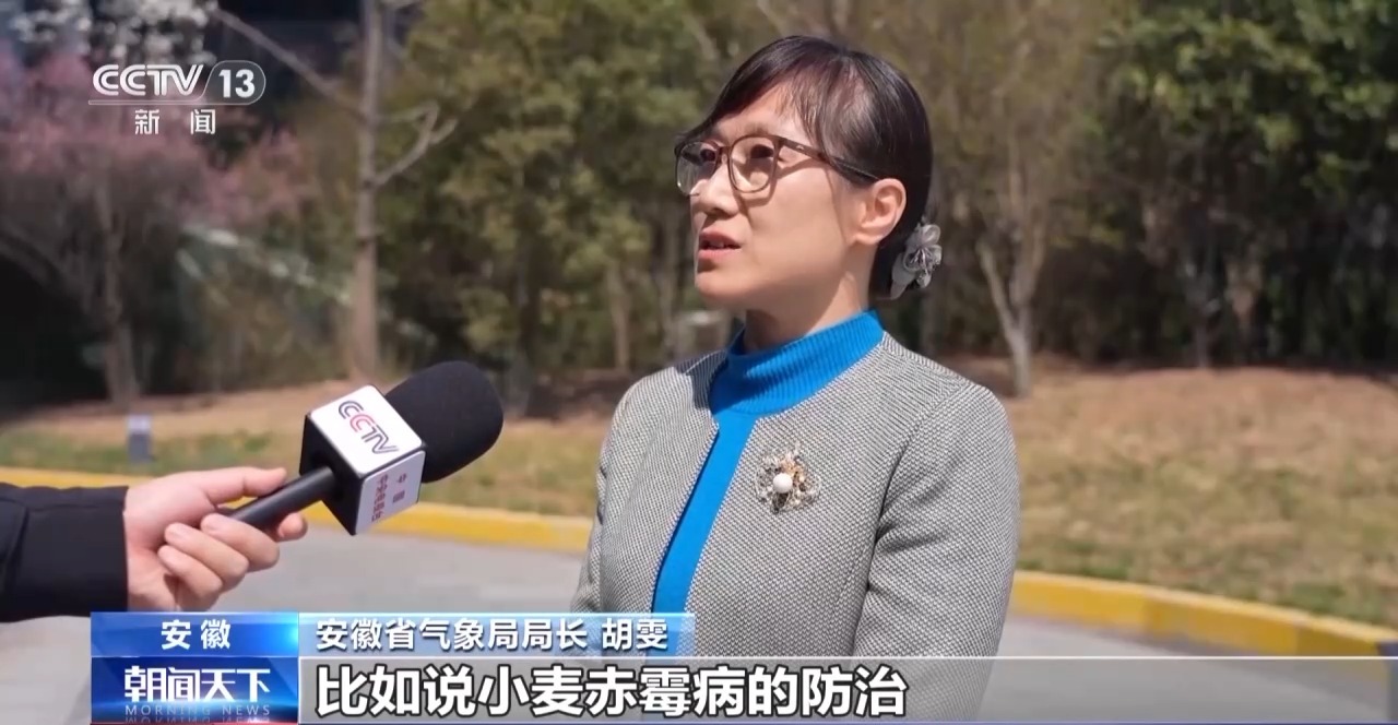 安徽省景象形象局局长胡雯:好比说小麦赤霉病的防治,风的预告也很是环节,所以就把最新的风的精细化预告给到大师。