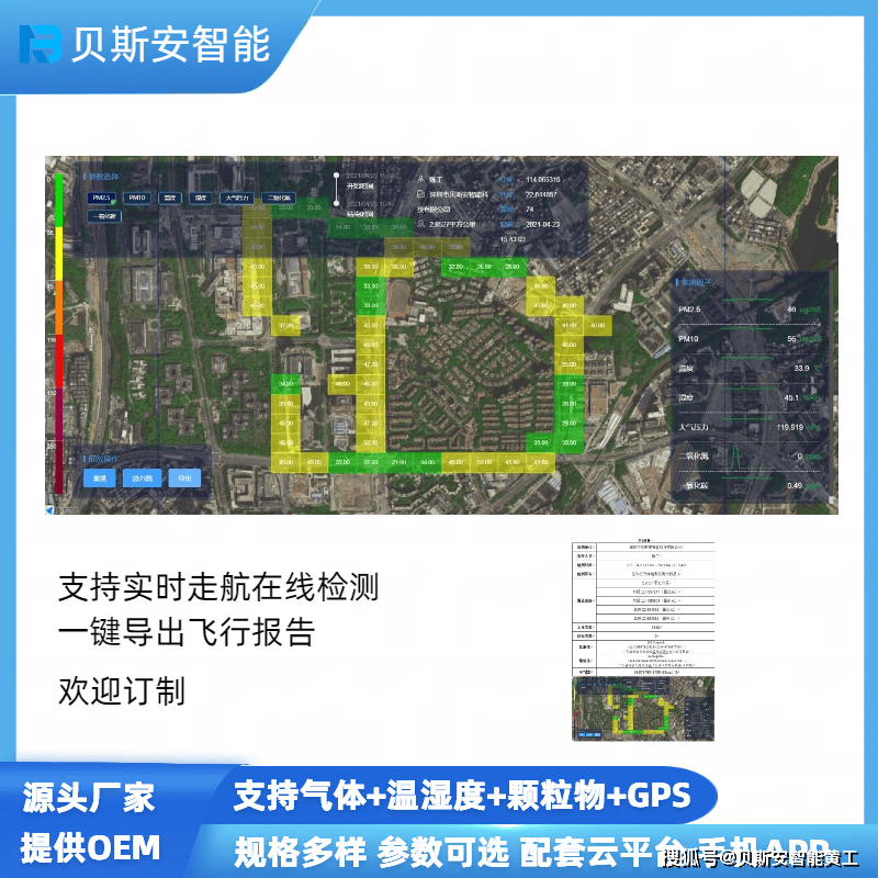 贝斯安无人机配备的景象形象检测仪对风速丈量极为精准,丈量范畴一般为 0 - 60m/s,精度可达 ±0。1m/s。正在景象形象研究中,细小的风速变化都可能对气候系统成长发生严沉影响。如正在台风研究中,切确风速数据有帮于精确判断台风强度取挪动径。风向丈量精度达 ±3°,能清晰反映风的来向。正在城市规划中,领会从导风向可合理结构工业区取居平易近区,削减工业污染对居平易近糊口的影响。可正在复杂地形区域获取地面景象形象坐难以丈量的风速风向数据,填补数据空白。